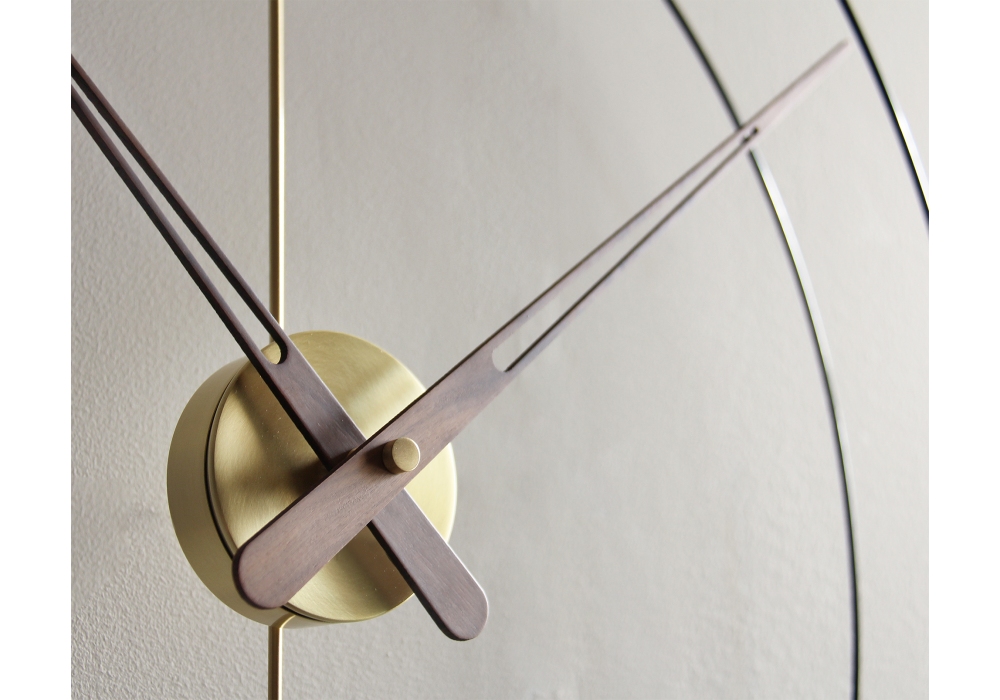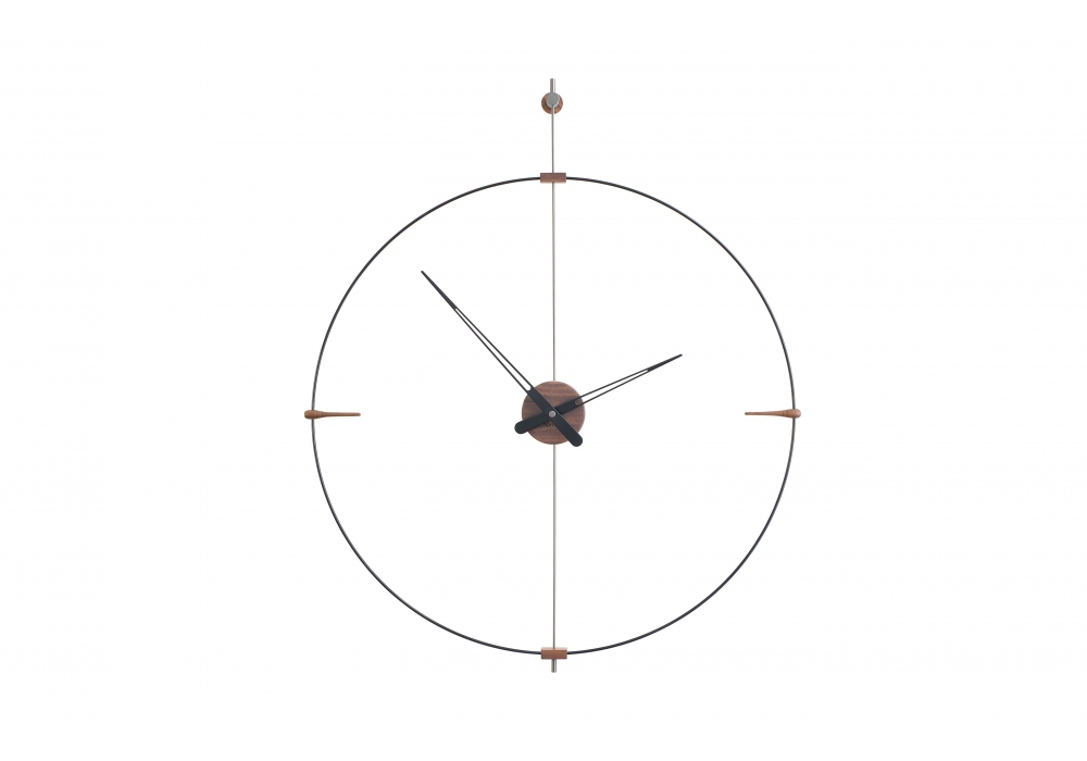 Mini Bilbao designed and produced by Nomon is a clock with black fiberglass structure, hands in natural walnut or painted black. The box is in walnut or brass.
