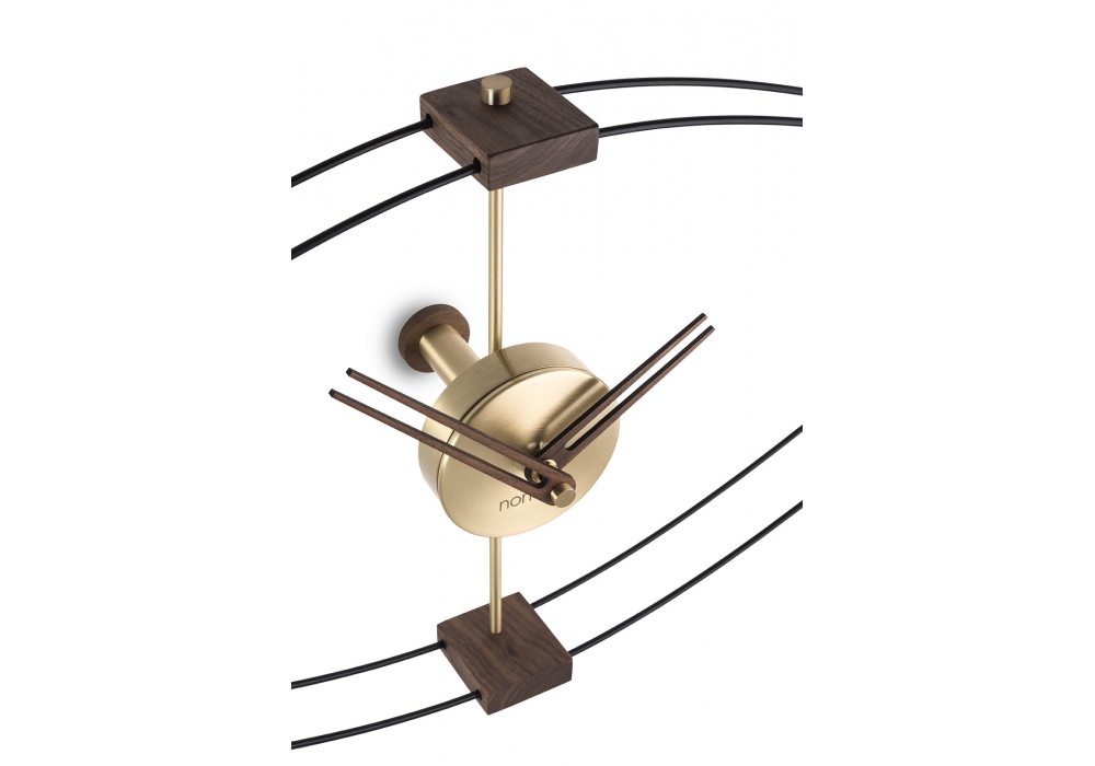 Mini Look designed and produced by Nomon is a clock with structure in black fiberglass, central box in polished brass and hands in walnut or wenge.