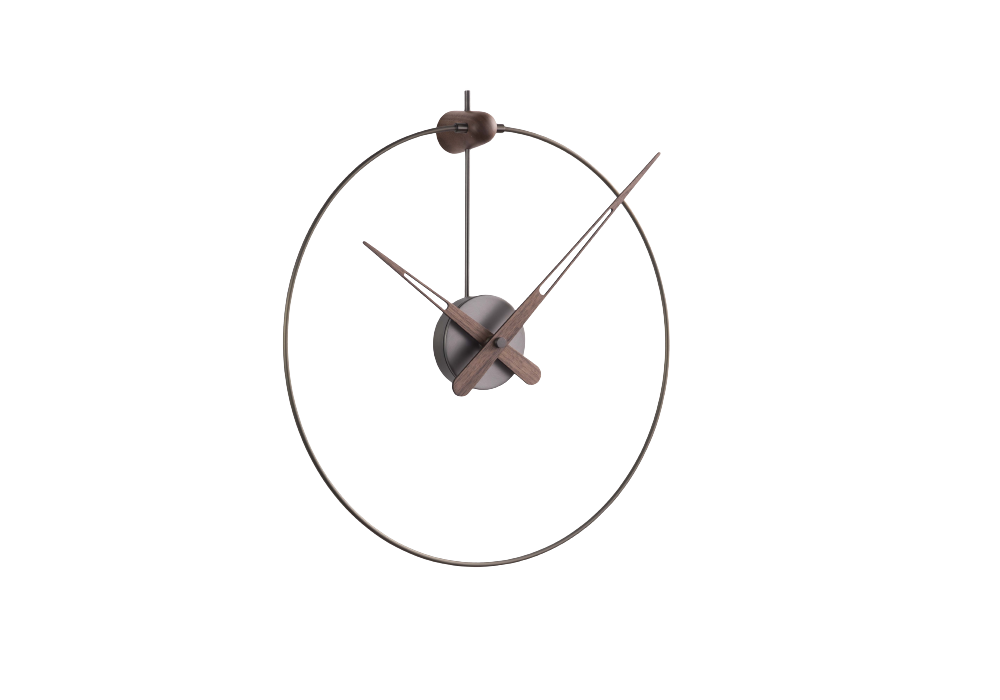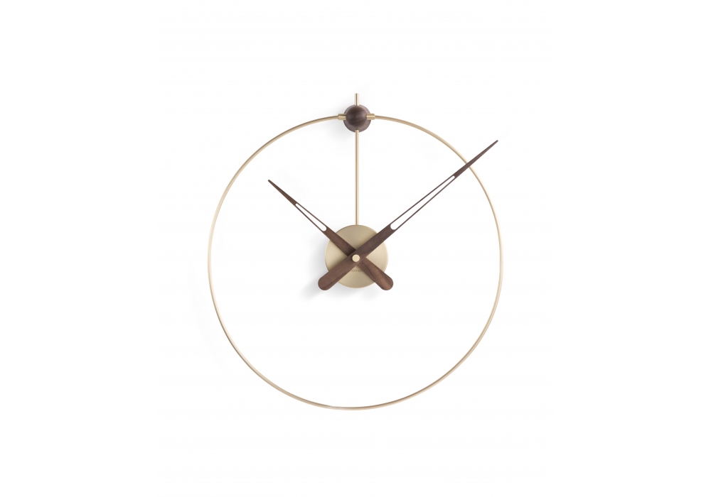 Micro Anda designed and produced by Nomon is a clock with ring and box in polished brass or graphite finish, hands in walnut.
