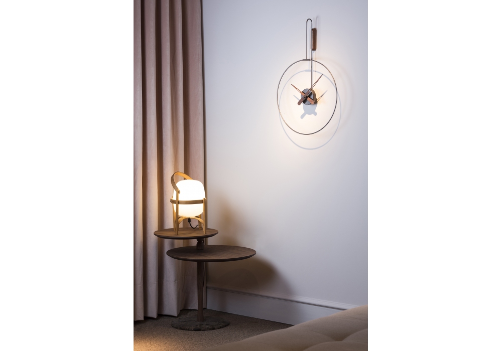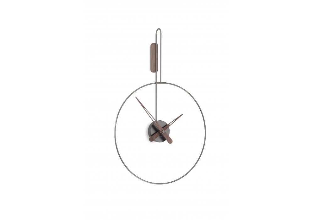 Micro Daro designed and produced by Nomon is a clock with ring and box in polished brass or graphite finish, hands in walnut.