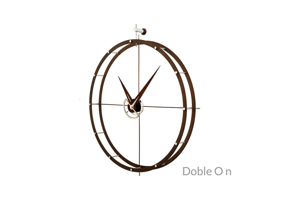 Doble O designed and produced by Nomon is a clock with rings in steel or wenge-stained wood, hands and details in various finishes.
