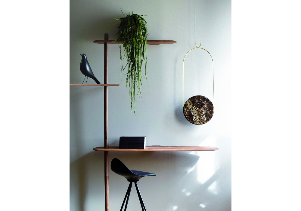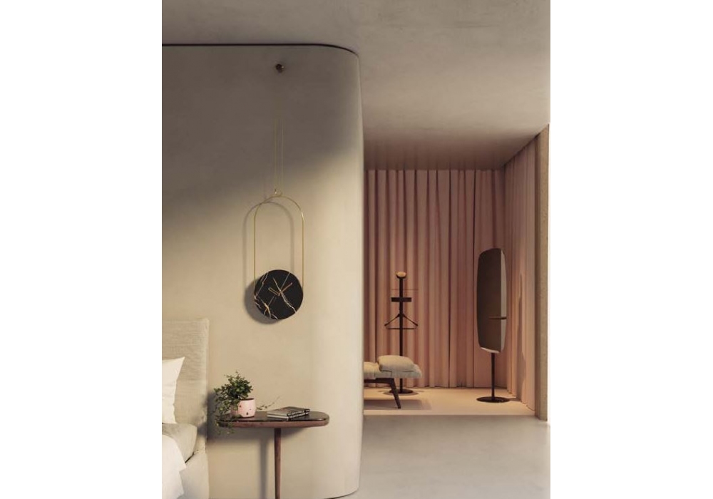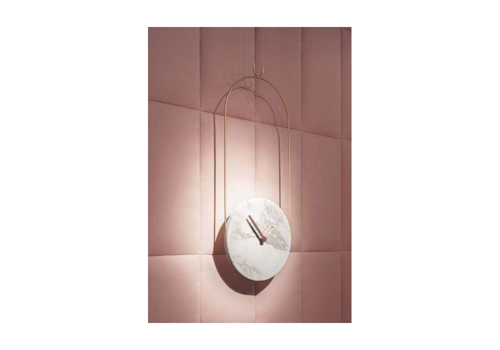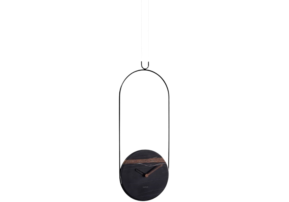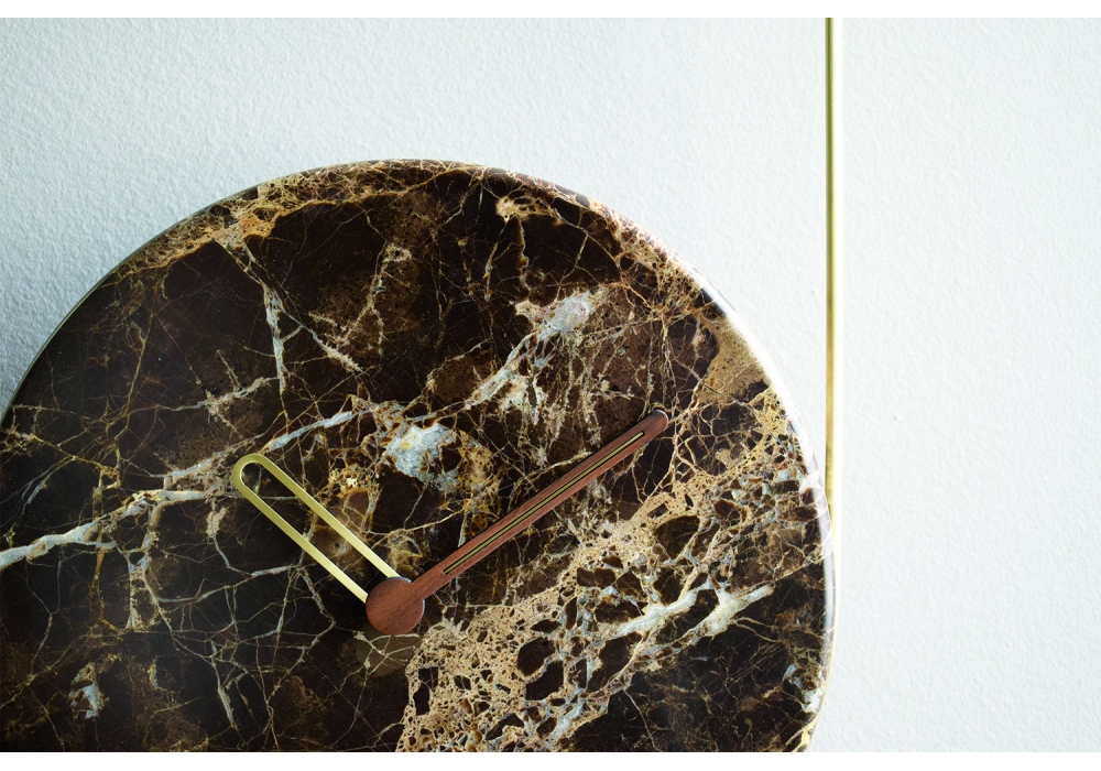 Colgante designed and produced by Nomon is a clock with metal structure and wooden or marble plate in different finishes.