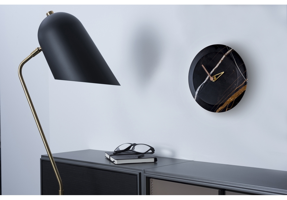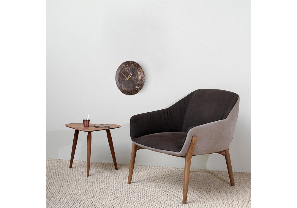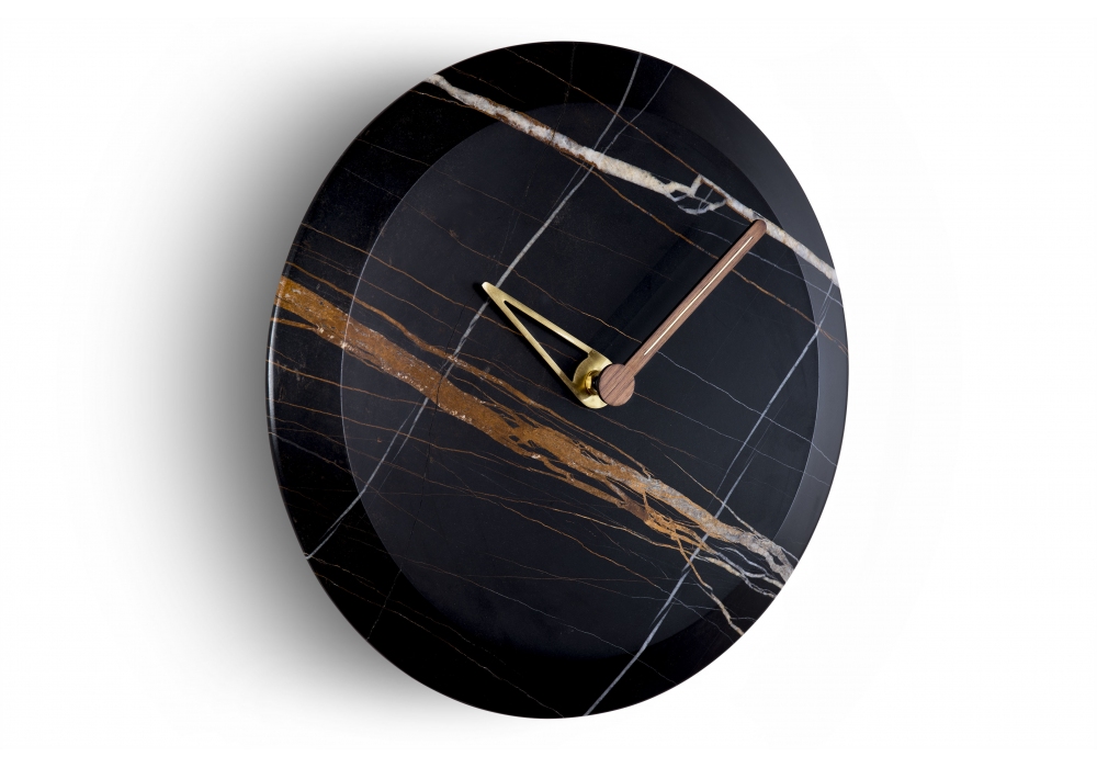 Bari designed and produced by Nomon is a wall clock with marble plate and wooden details, in different finishes. Available in 2 sizes.