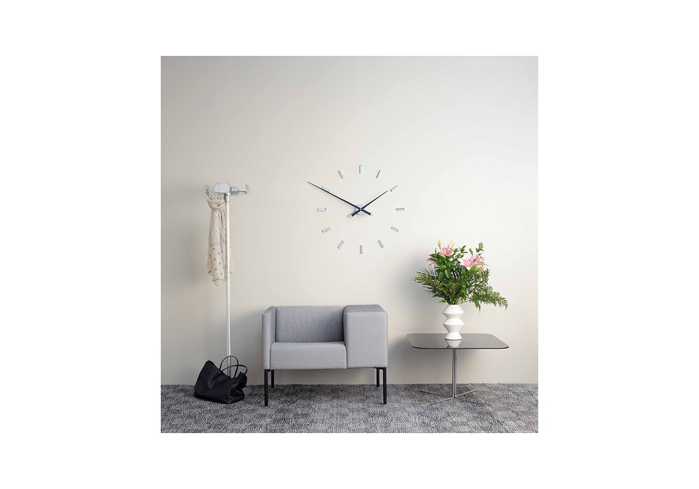 Tacòn G/T/L designed and produced by Nomon is a wall clock with 4 or 12 time signals in chromed or polished brass, hands in walnut varnished in different finishes.