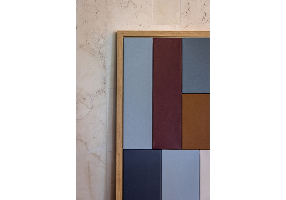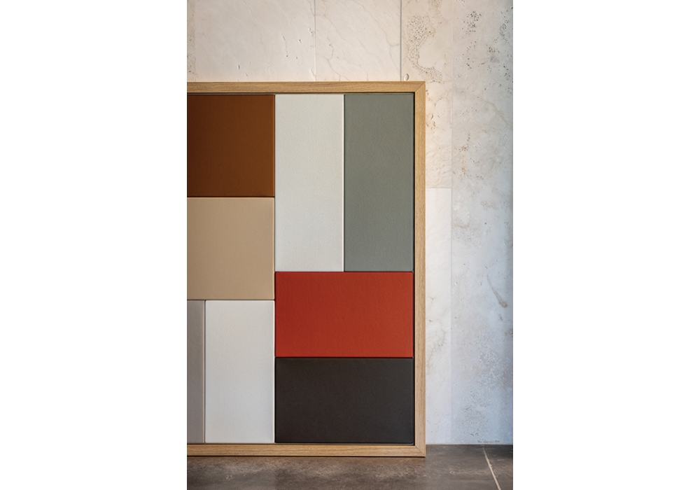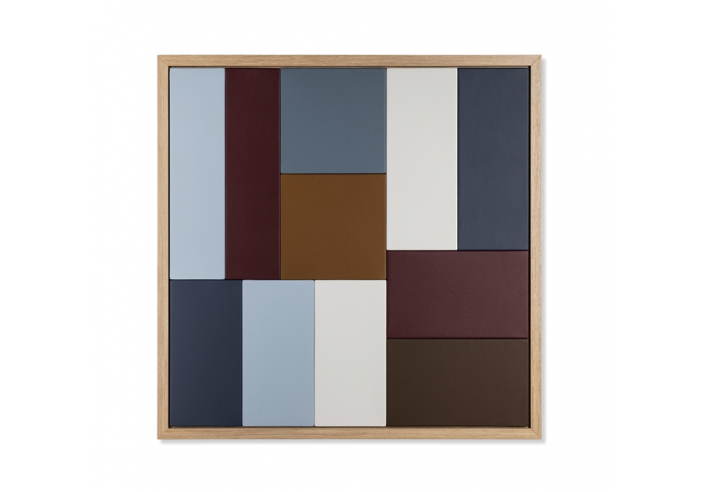 Tableau designed by Simona Cremascoli for Poltrona Frau are graphic wall composition, created through the chromatic alphabet of Pelle Frau® leather. Each square is made up of individual panels covered in Pelle Frau® ColorSphere® leathers of different colours and enclosed in the wooden frame. They are available in 4 colour combinations.
