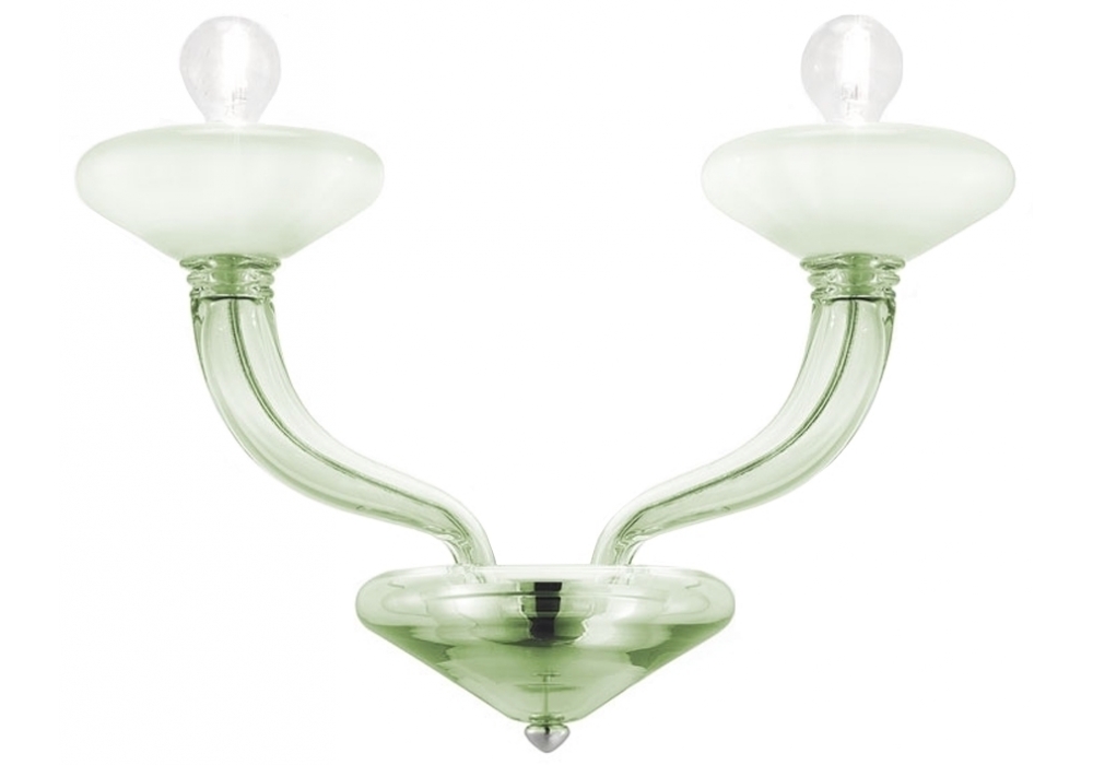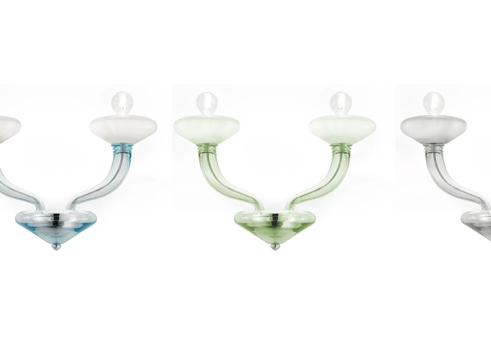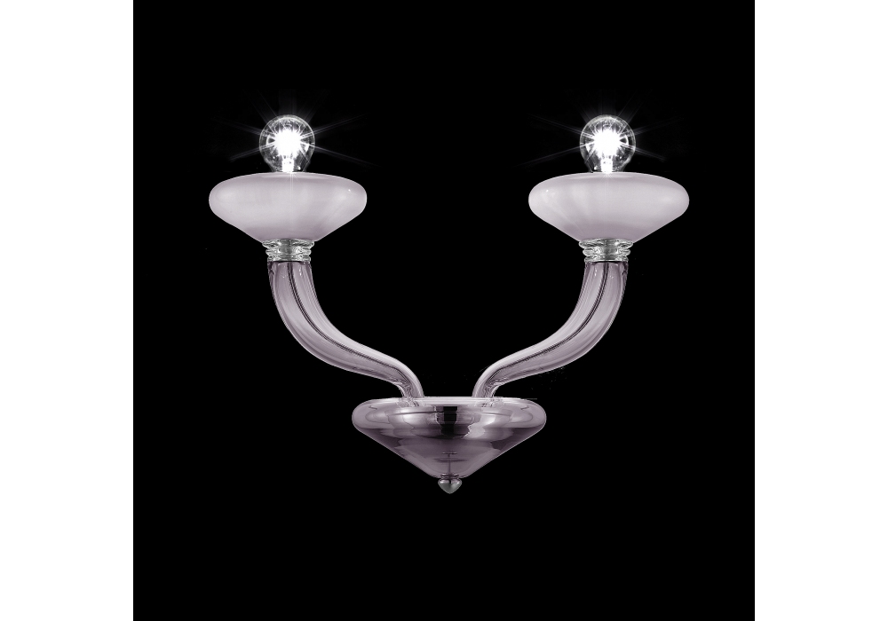 Windsor designed and produced by Barovier & Toso is a wall lamp with supporting structure and details in polished chrome-colored metal. The arms and the lamp body are covered in Venetian glass and adopt dimmable LED or halogen light sources. Windsor is available in different finishes.