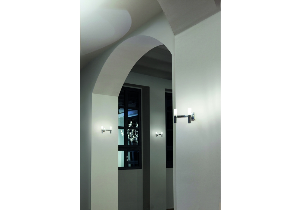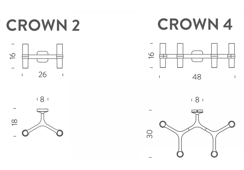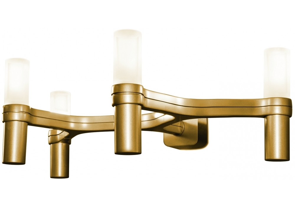 Crown designed by Jehs+Laub for Nemo is a wall lamp with supporting structure in painted die-cast aluminum with two or four arms. The diffusers are small cylindrical glasses in sandblasted glass and screen a dimmable halogen or LED light source. Crown is available in different models and finishes.