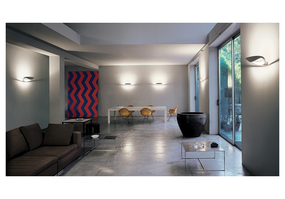 Mesmeri designed by Eric Solé for Artemide is a wall lamp structured mainly in white painted aluminium. The type of lighting is double diffusion with a dimmable LED light source.