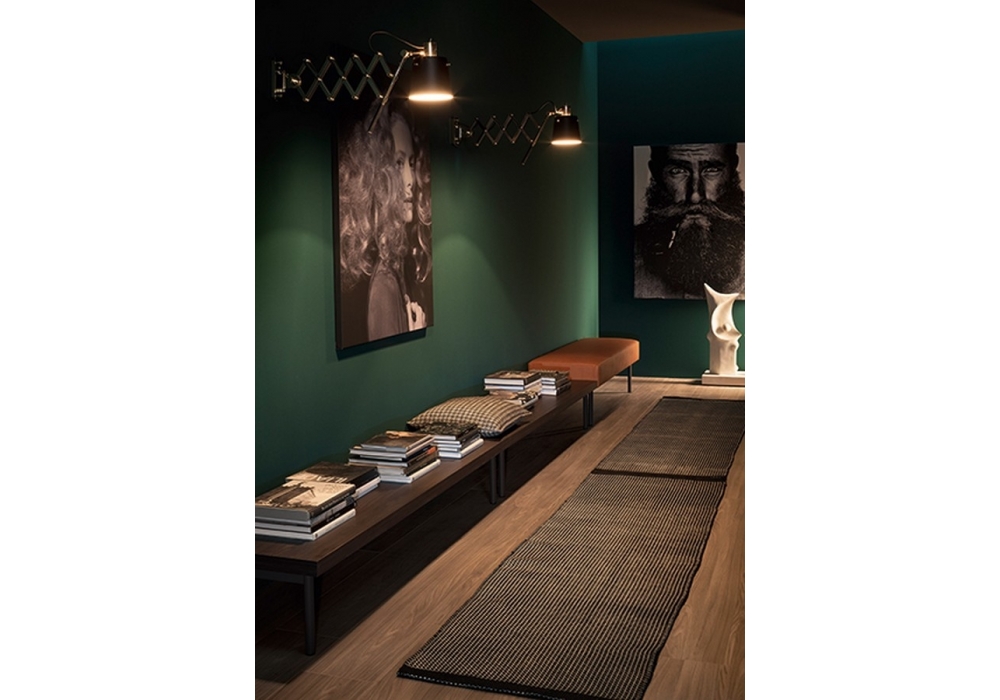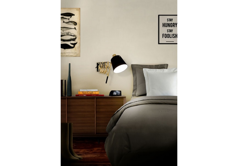 Pastorius designed by DelightFULL is a wall lamp with an extendable arm that can be adjusted in different positions. Its structure is made of brass and the lampshade in aluminium.
