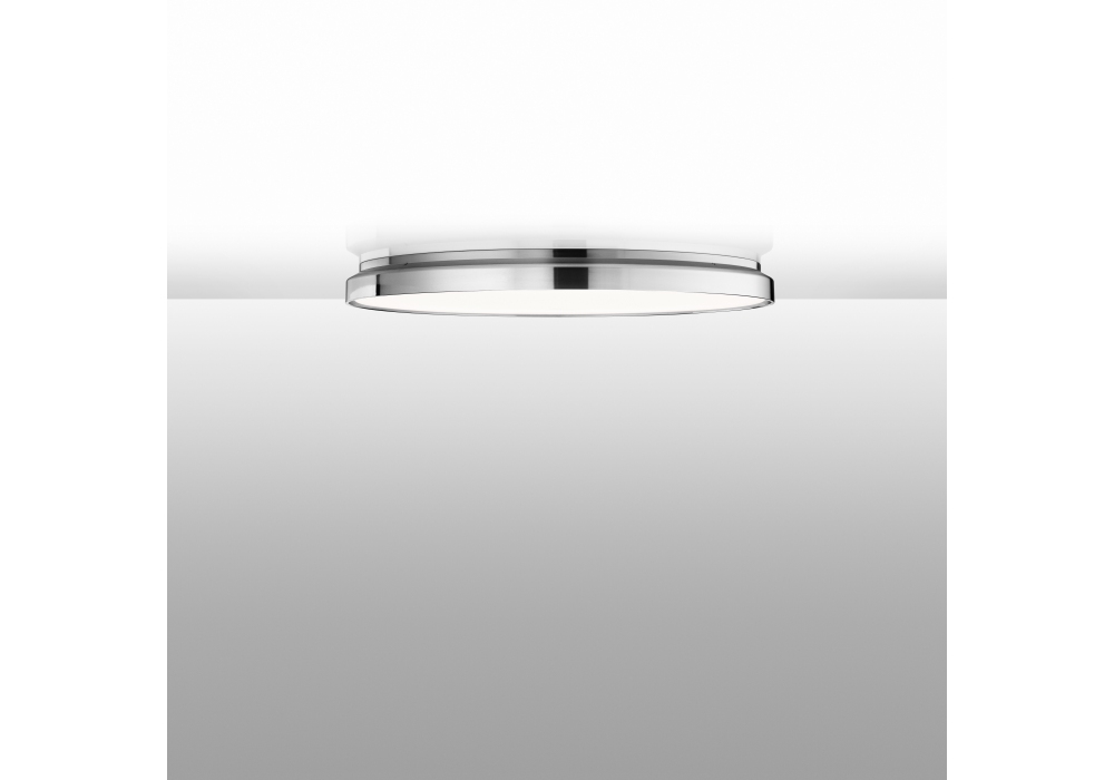 Clara designed by Piero Lissoni for Flos is a ceiling or wall mounted lighting fixture providing diffused light. The front diffuser is in injection-molded opal polycarbonate with high diffusion efficiency. Wall attachment in injection-molded polycarbonate. An optional circular accessory in PC and ABS+PC is available as a decorative ornament. Remotely adjustable (dimmer not included). LED light source included.