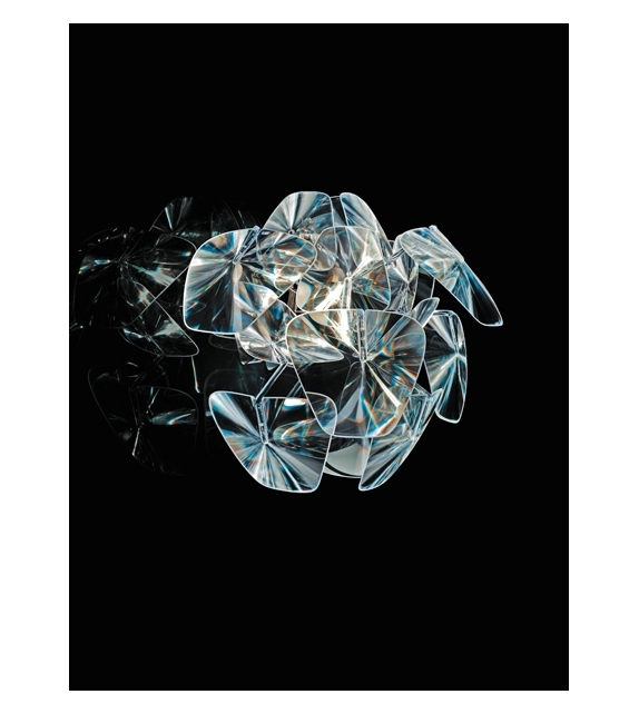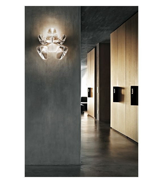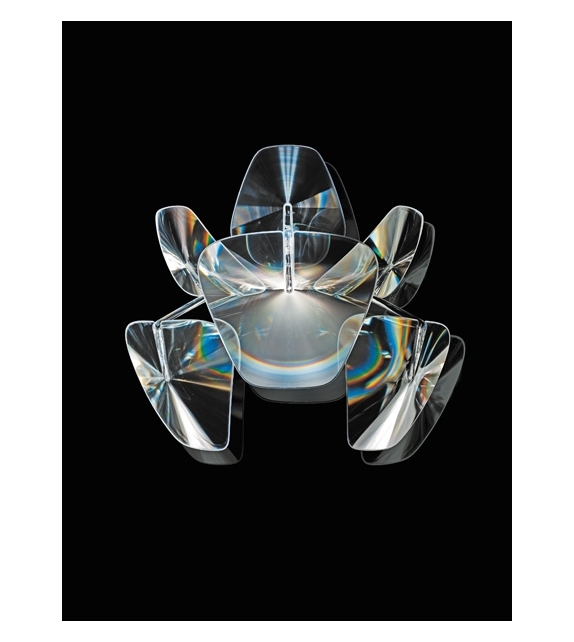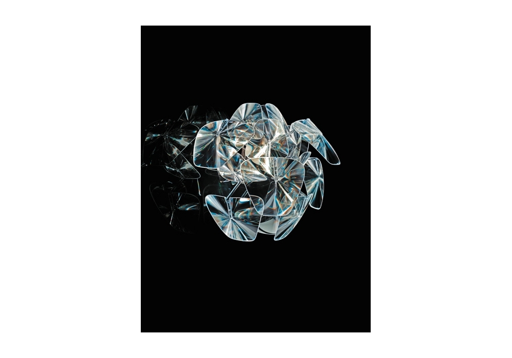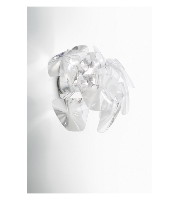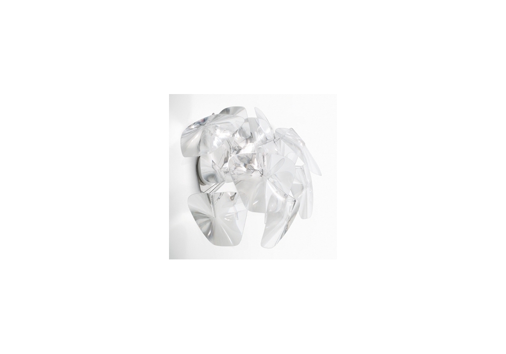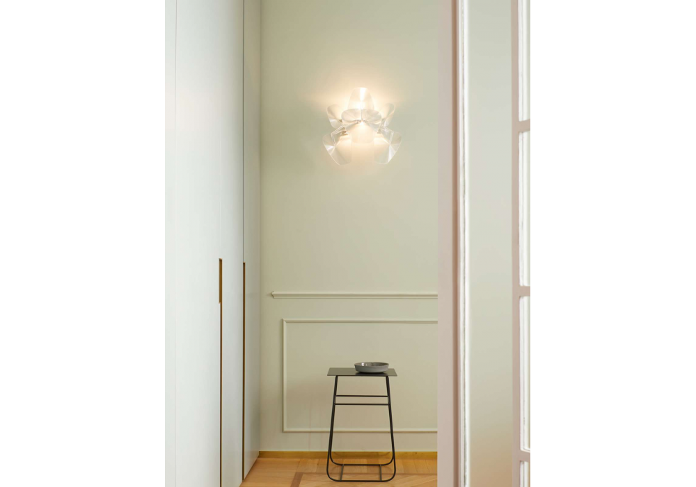 Hope designed by Francisco Gomez Paz and Paolo Rizzatt for Luceplan is a wall lamp with structure in polished steel and transparent polycarbonate. Prismatic lenses in methacrylate. Suitable for any type of light source. Available in two sizes.