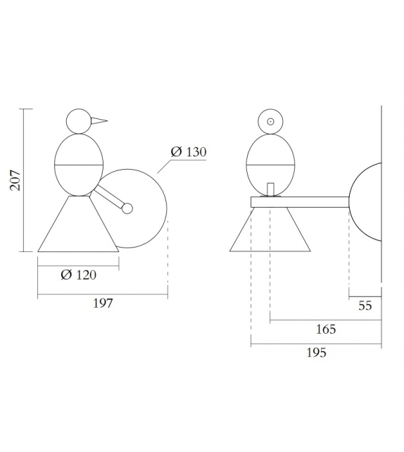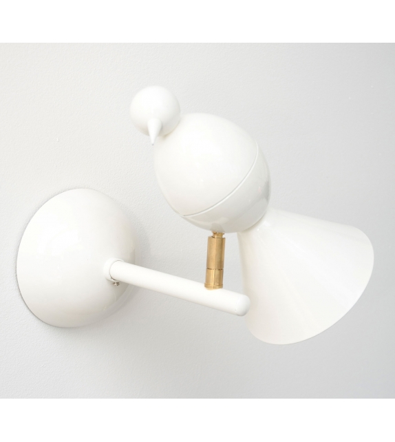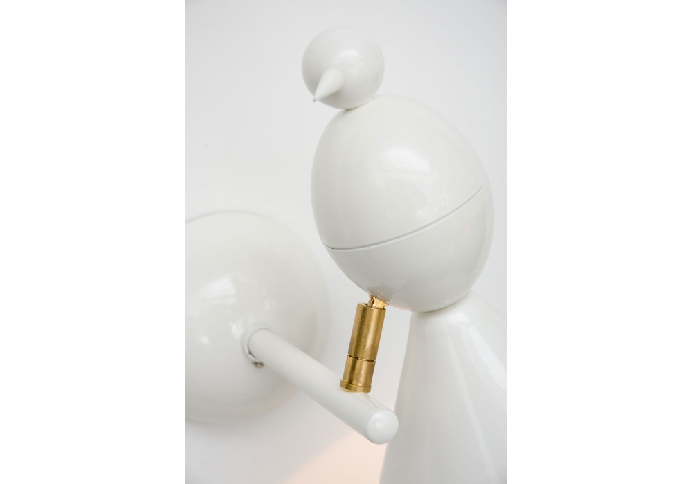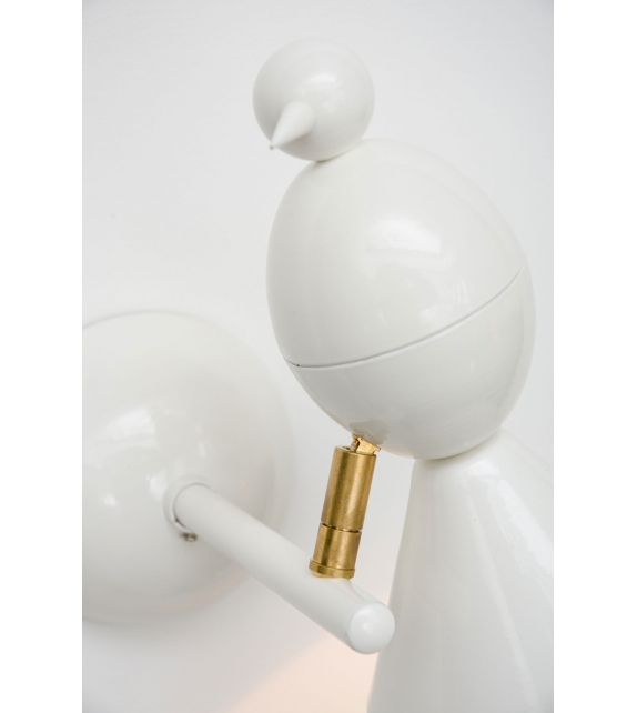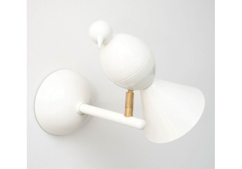 Alouette designed by Atelier Areti is a wall lamp available in black or white. The brass joint allows the birds to move and rotate in various directions. It's made of powder coated steel.