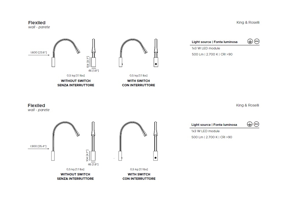 | Brightness | 2700 K° 500 lm CRI 90 |