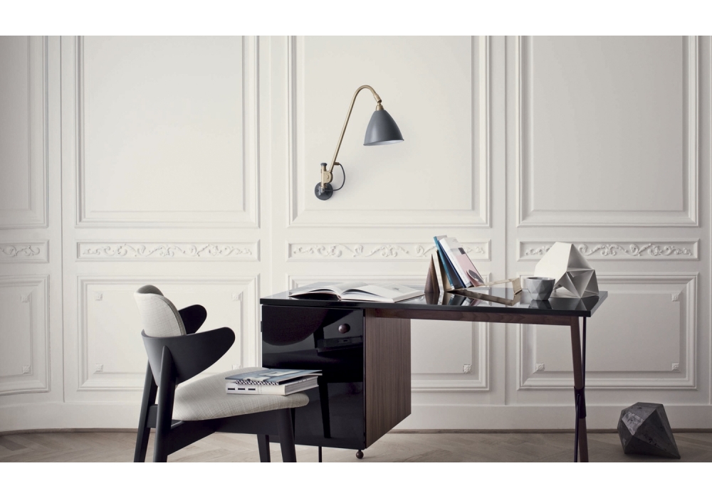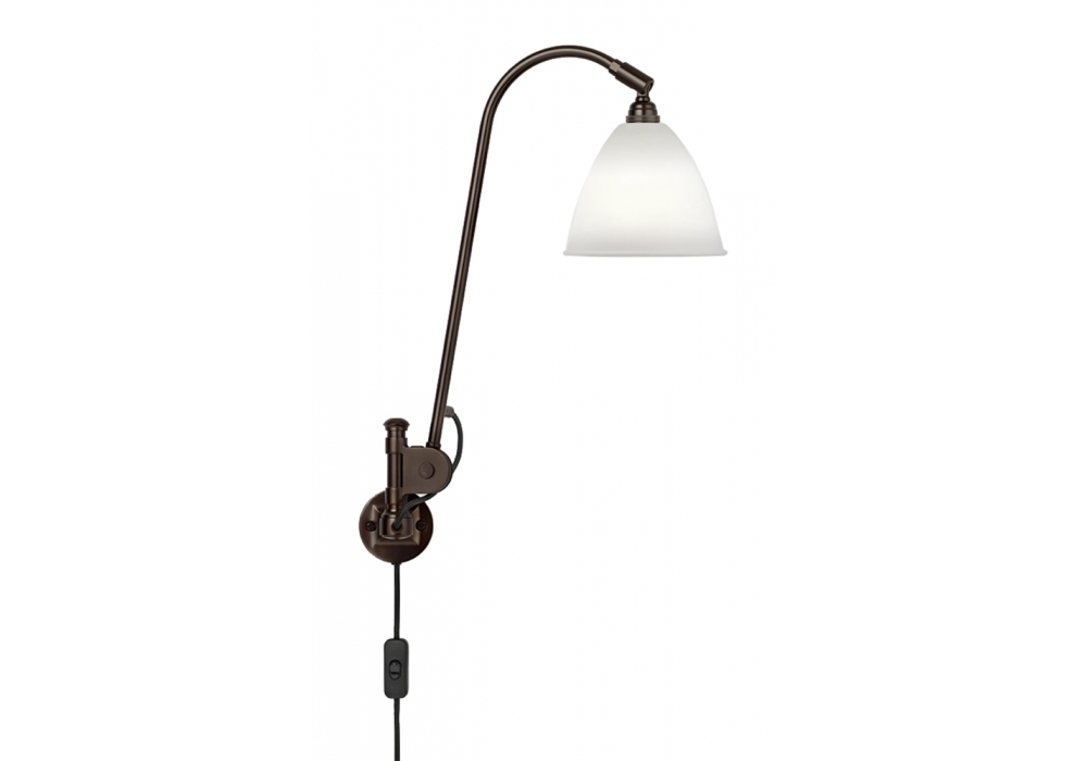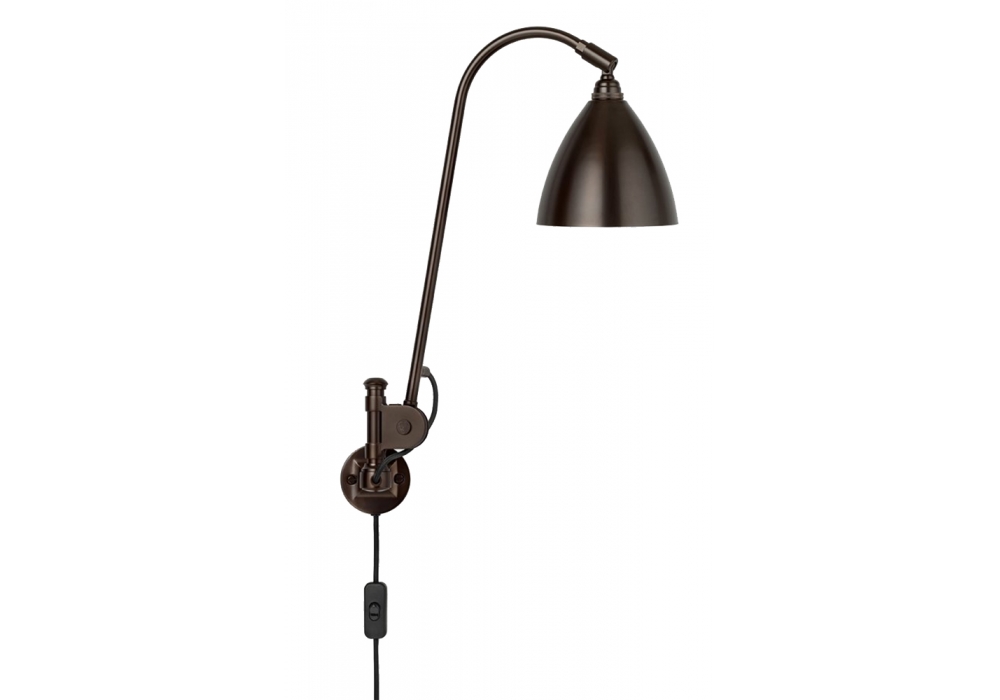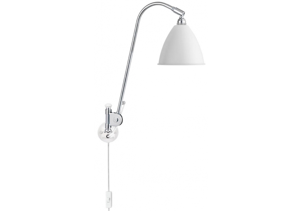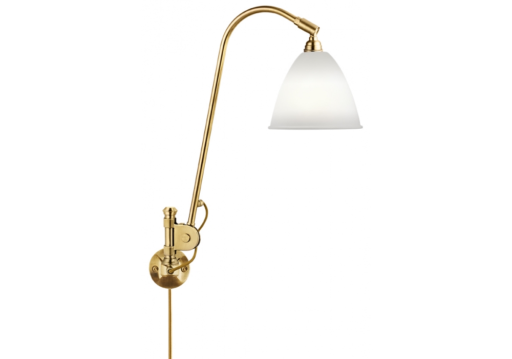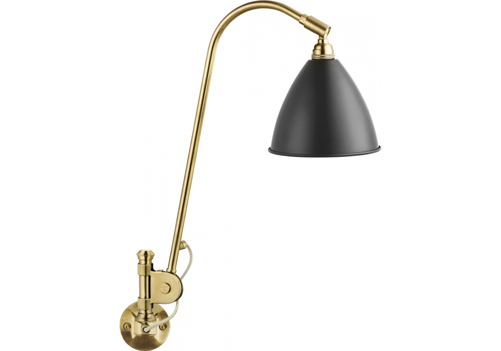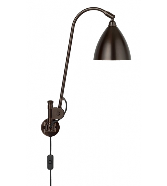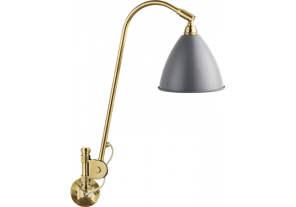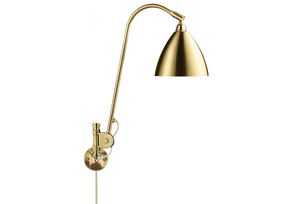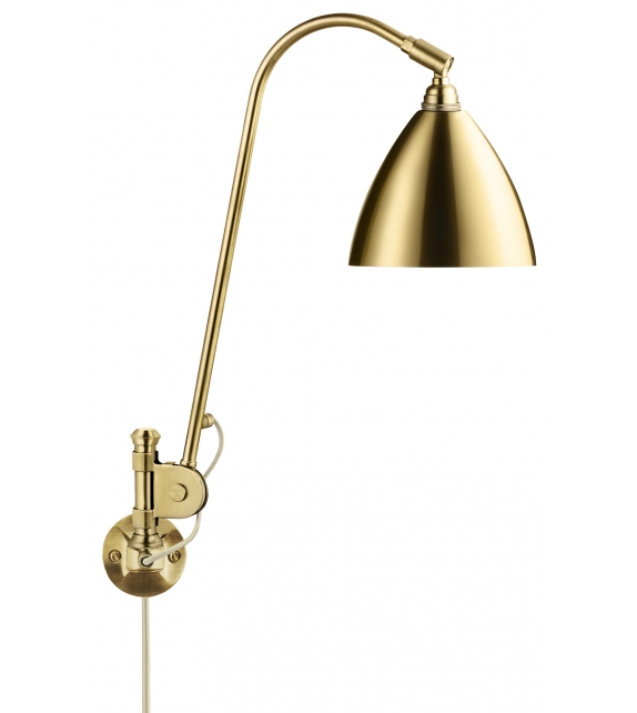 Bestlite BL6 designed by Robert Dudley Best for Gubi is a wall lamp with shade and base in powder-coated metal, structure in brass or chrome. The lamp can be tilted 90 degrees from horizontal to vertical, the shade can be rotated 360 degrees. The textile cord matches the shade, except full chrome which is black, and all brass is golden. Available in more finishes. Light bulb is not included.