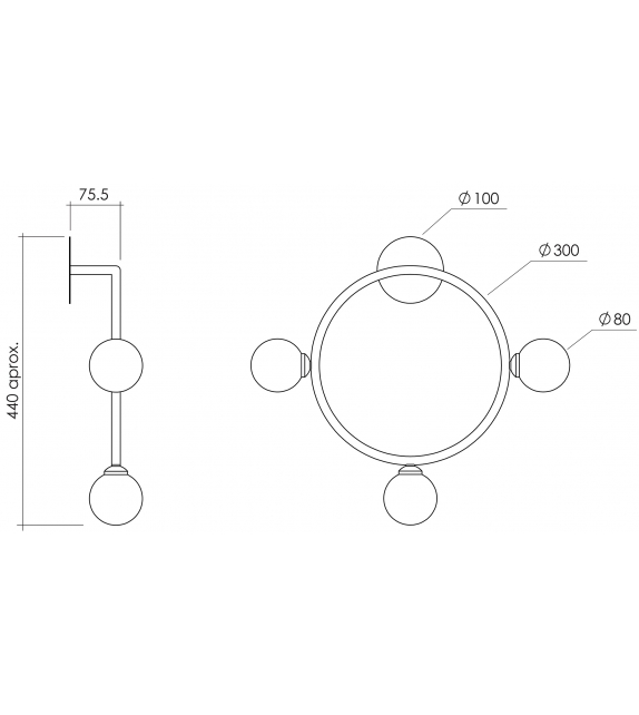 Circle by Atelier Areti is a wall lamp made of powder coated metal or brass with glass sphere. Available in black, white or brass.