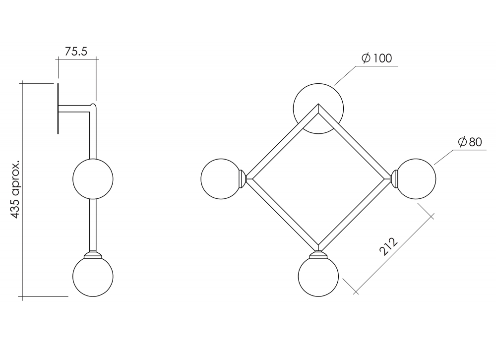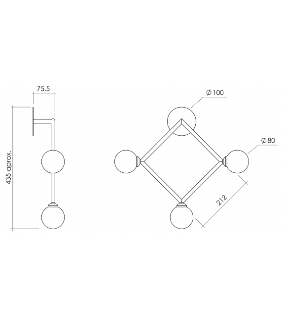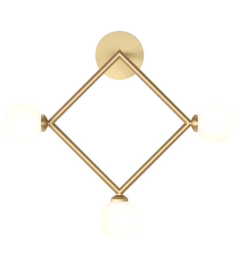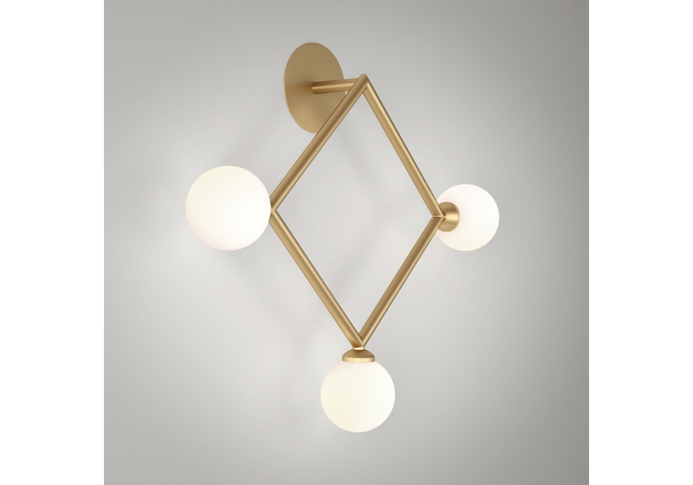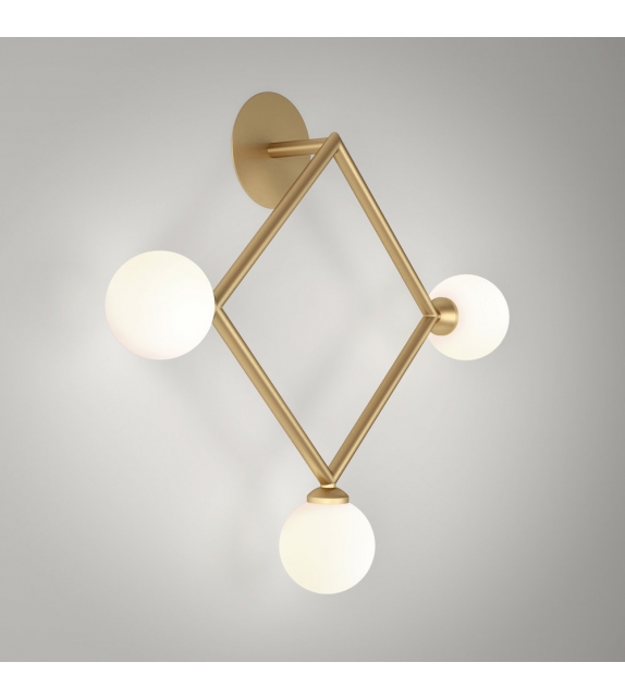 Rhombus by Atelier Areti is a wall lamp made of powder coated metal or brass with glass sphere. Available in black, white or brass.