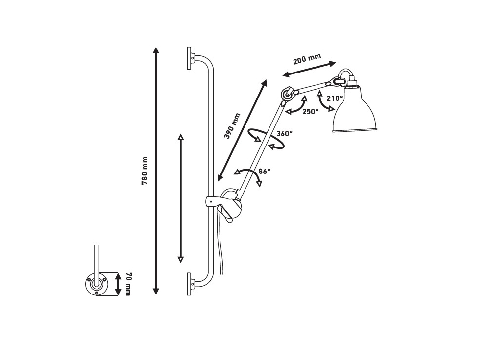 N°210 designed by Bernard-Albin Gras for DCW Éditions is a wall lamp with steel structure and diffuser available in 2 shapes and different finishes. Today, this lamp has become sought after a collector’s item all over the world, most notably in France, in the United States and in Japan. Bernard Albin Gras' talented and visionary design has proven to be timeless.