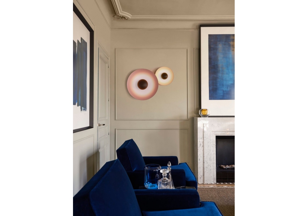 Ginger designed by Joan Gaspar for Marset is a wall lamp with pressed wood diffuser of 4 mm in natural oak or wenge. Injected and lacquered black metal matte aluminium diffusor. Also available in 3 sizes.