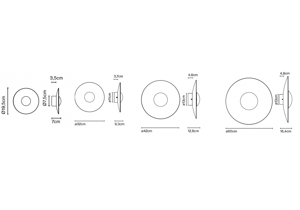 | Diameter | • 19,5 cm; • 32 cm; • 42 cm; • 60 cm |