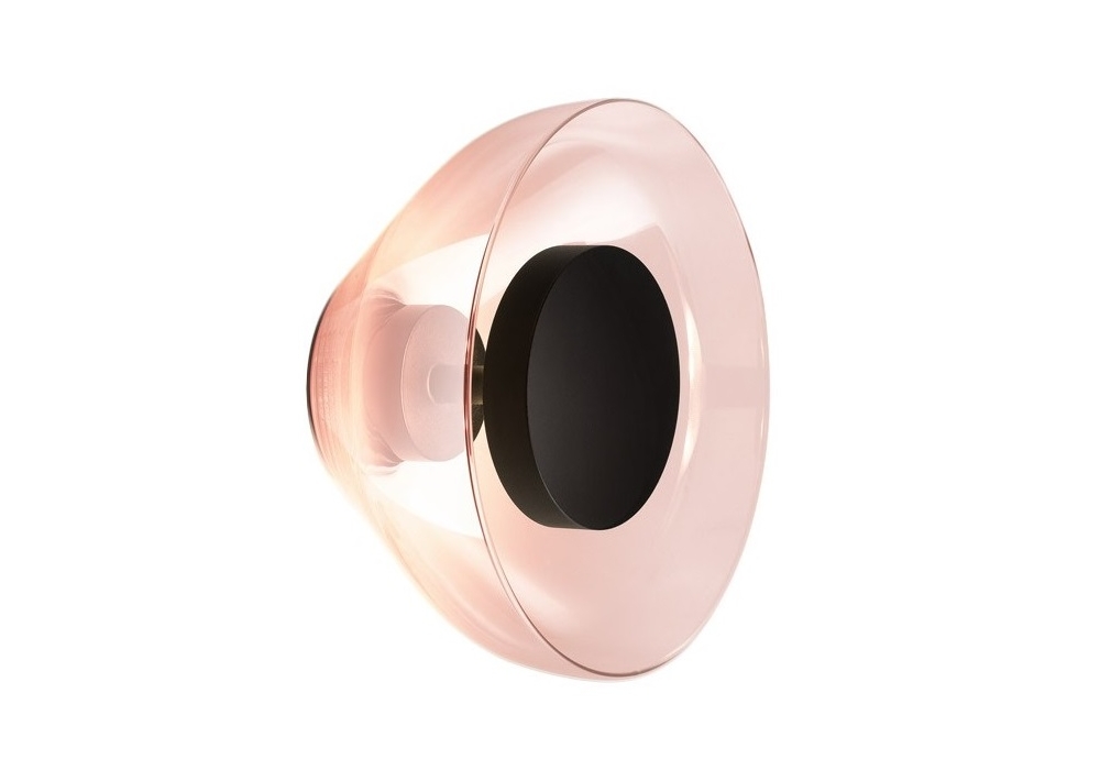 Aura designed by Joan Gaspar for Marset is a wall lamp with polycarbonate structure and blown glass shade. Available in different finishes.