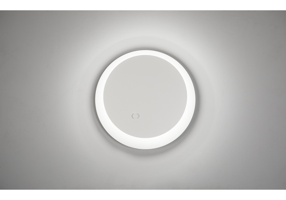 Eclipsi designed by Josep Lluís Xuclà for Estiluz is a circular wall lamp in white painted metal. The light source adopted is of the dimmable LED type. Eclipsi is available in two different models.