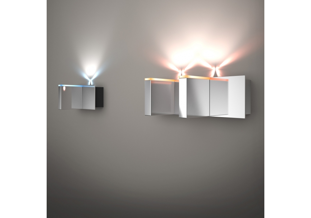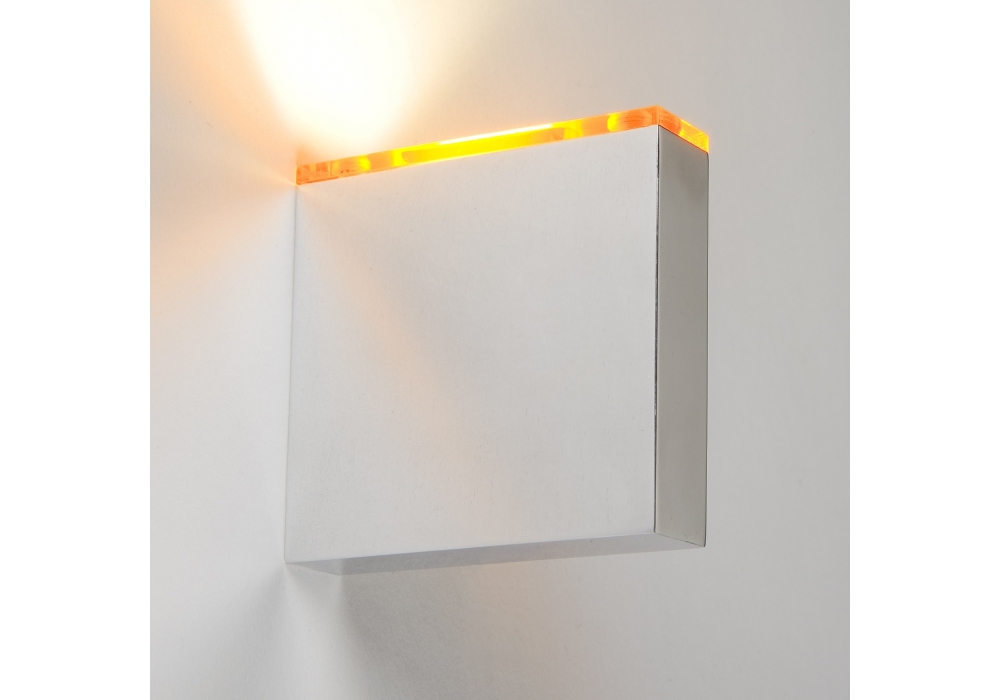 Match designed by Jos Muller for Quasar is a wall lamp with a quadrangular lamp body in polished aluminium. The diffuser is made of acrylic material and adopts a colored LED light source; red, orange, yellow, green, blue or transparent. March is available in different models and sizes.