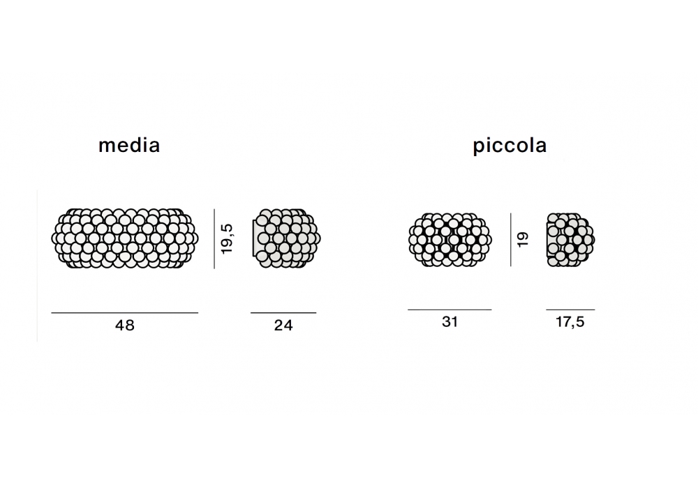 Caboche Plus designed by Patricia Urquiola and Eliana Gerotto for Foscarini is a wall lamp with metal and aluminum structure and polymethylmethacrylate spheres. The diffuser is made of polycarbonate and shields a LED or halogen type R7s light source. Caboche Plus is available in different finishes and sizes.