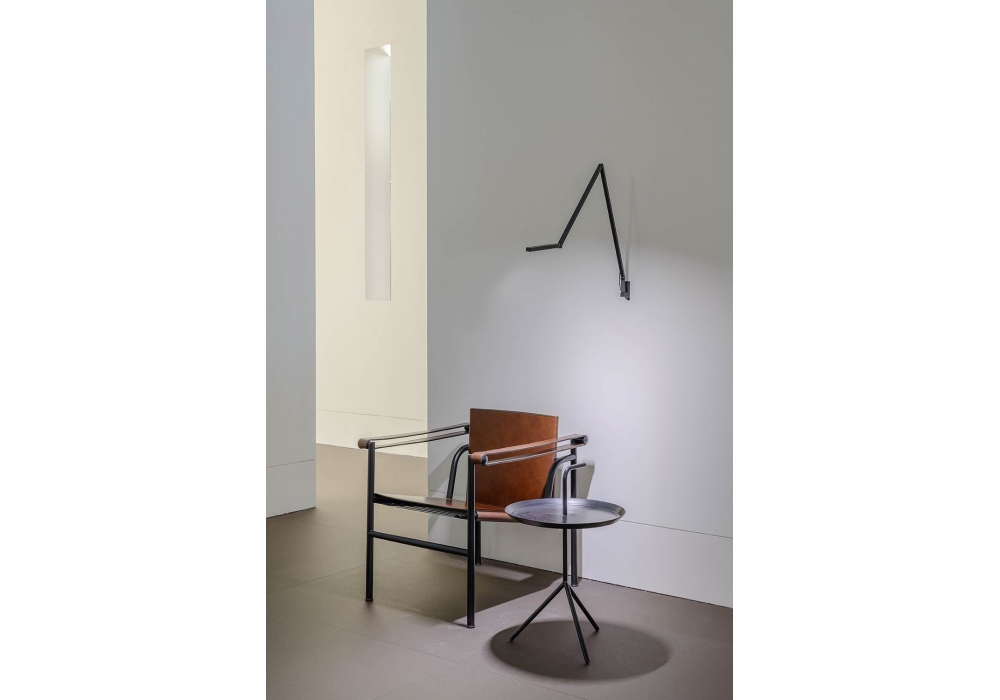 Untitled designed by Bernhard Osann for Nemo is a wall lamp entirely structured in matt black painted extruded aluminum. The diffuser has a cylindrical shape and houses a dimmable LED light source in different shades of light. Untitled is available in different models and gradations of light source.