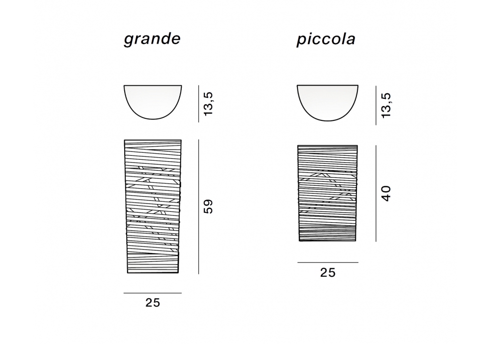 | Dimensions | 25 x 13,5 x H 40 cm (Tress Small); 25 x 13,5 x H 59 cm (Tress Large). |