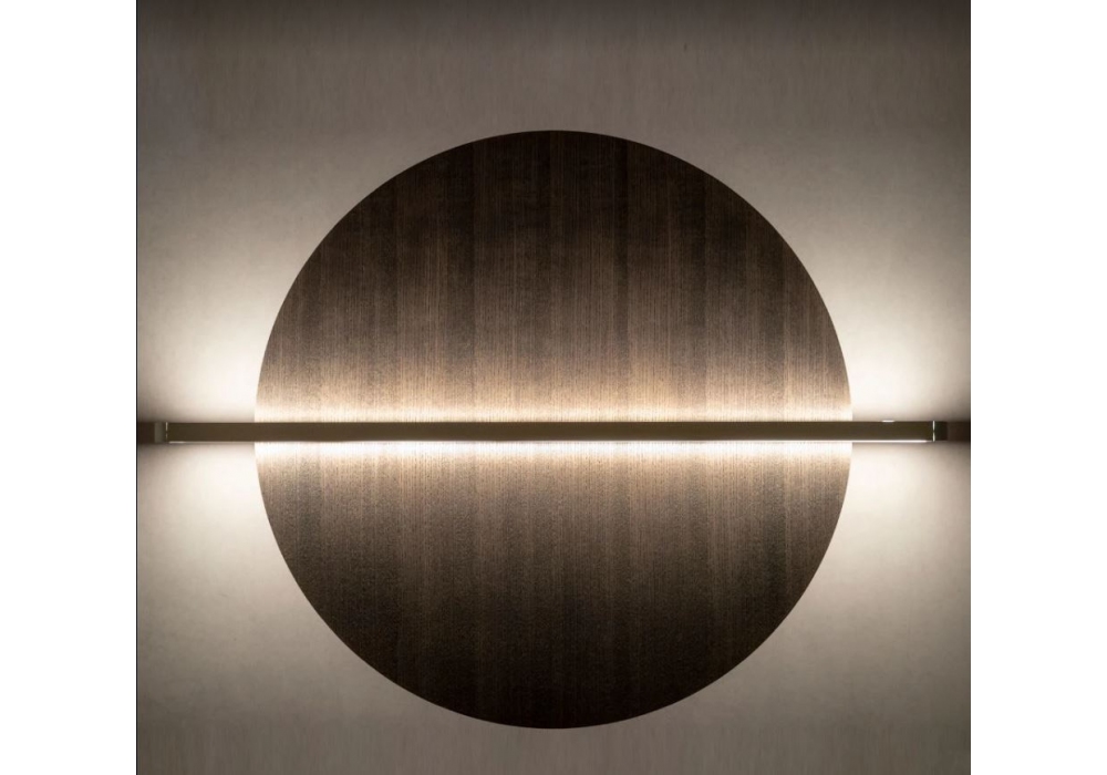 Hang Out Circular designed by Bogliato Traverso for Penta is a wall lamp structured by the combination of metal and a circular panel in MDF, fabric or ash. The light source adopted is of the LED type with different gradations of light and dimmability. Hang Out Circular is available in two different finishes.