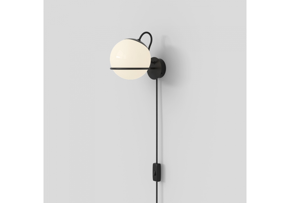 Model 237/1 designed by Gino Sarfatti for Astep is a wall lamp with opal glass diffuser and steel structure available in different finishes.