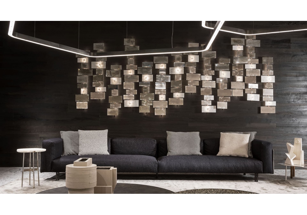 Abaco designed by Massimo Castagna for Henge is a LED wall lamp made with metal structure with lampshade in matching White Chrystal stone and metal finishes. Available in different finishes and dimensions.