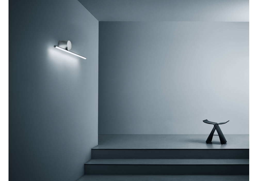 Coordinates Wall 1 designed by Michael Anastassiades for Flos is a diffused light wall-mounted lighting fixture, composed of a horizontal rod. Each rod is made of an extruded, machined and anodized aluminum body and a platinum optical silicone diffuser with an integrated LED strip. Each model is equipped with its own rosette, whose integrated electronics use only the TRIAC dimming system.