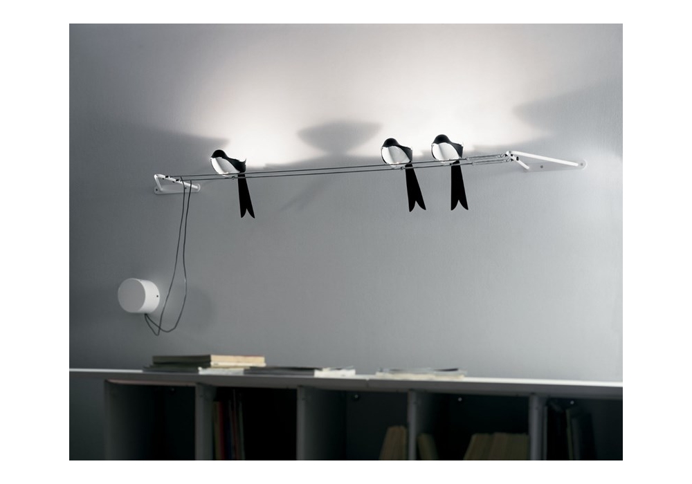 Le Rondini designed by Elio Martinelli for Martinelli Luce is a wall lamp entirely structured in painted metal with chromed conductors. The light source used is of the LED type.