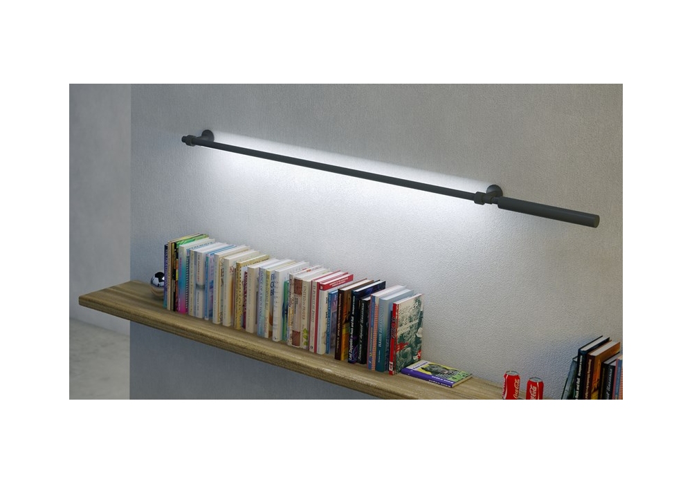 Colibrì 1421 designed by Emiliana Martinelli for Martinelli Luce is a structured wall lamp in black anodized tubular aluminum. The diffuser is made of plastic material and adopts an integrated LED light source.