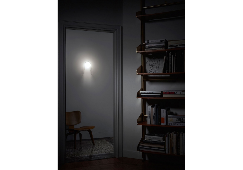 Satellight designed by Eugeni Quitllet for Froscarini is a wall lamp structured by a transparent glass bell-shaped body. The diffuser is spherical in opaque white blown glass and houses a LED or halogen light source with G9 connection.