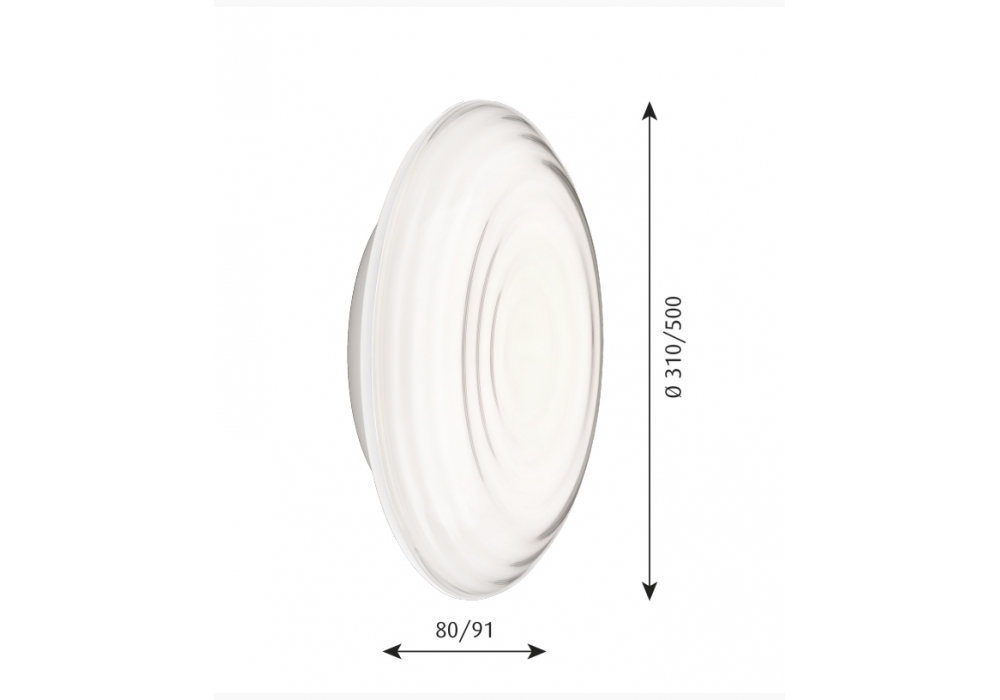 Ripls designed by Jakob Wagner for Louis Poulsen is a circular wall or ceiling lamp with polycarbonate supporting structure. The diffuser is in opalescent PMMA with a surface characterized by concentric circles and shields a dimmable LED light source in different versions and light shades. Ripls is available in different sizes.