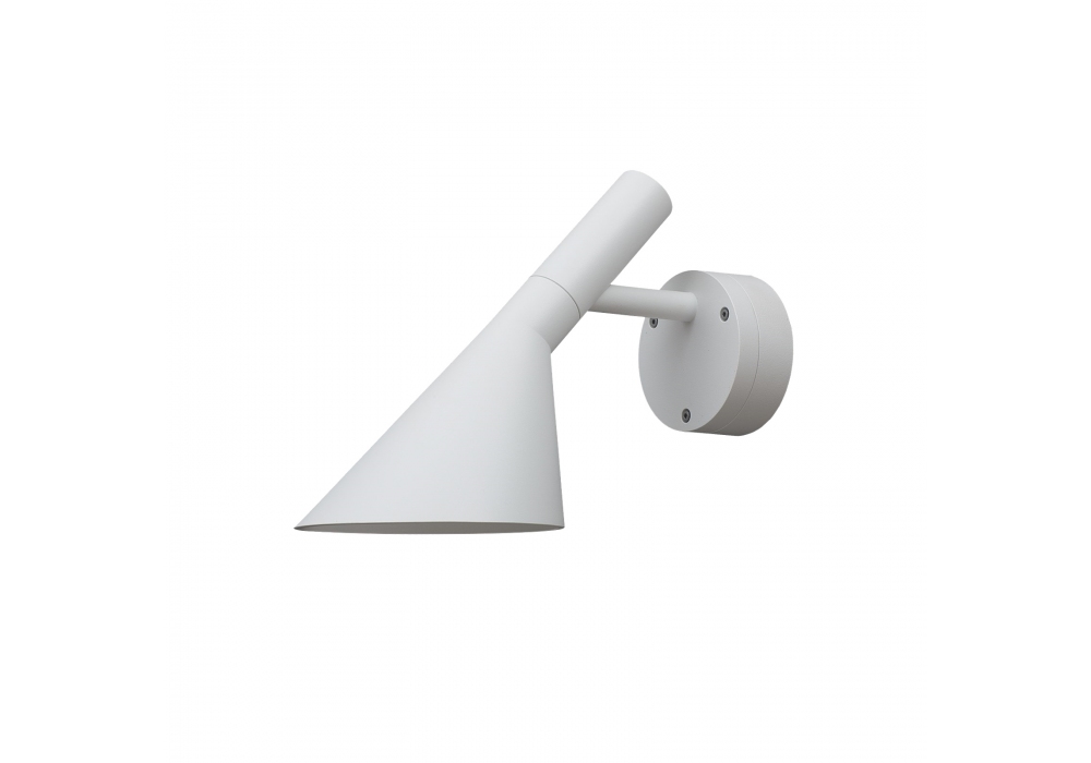 AJ 50 designed by Arne Jacobsen for Louis Poulsen is an outdoor wall lamp with supporting structure in powder coated die-cast aluminum. The diffuser is in white painted aluminum and shields a LED-type light source. AJ 50 is available in different finishes.