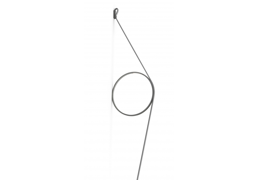 Wirering designed by Formafantasma for Flos is a wall-mounted lighting fixture with indirect light composed of a calendered extruded aluminum body with a galvanic or painted finish. The special tangent cable, in colored rubber, provides power. The cable is fixed to the wall with ABS joints in the same finish as the ring. Dimmer function via a foot switch on the cable. Power supply on a plug with interchangeable plugs. LED light source included.