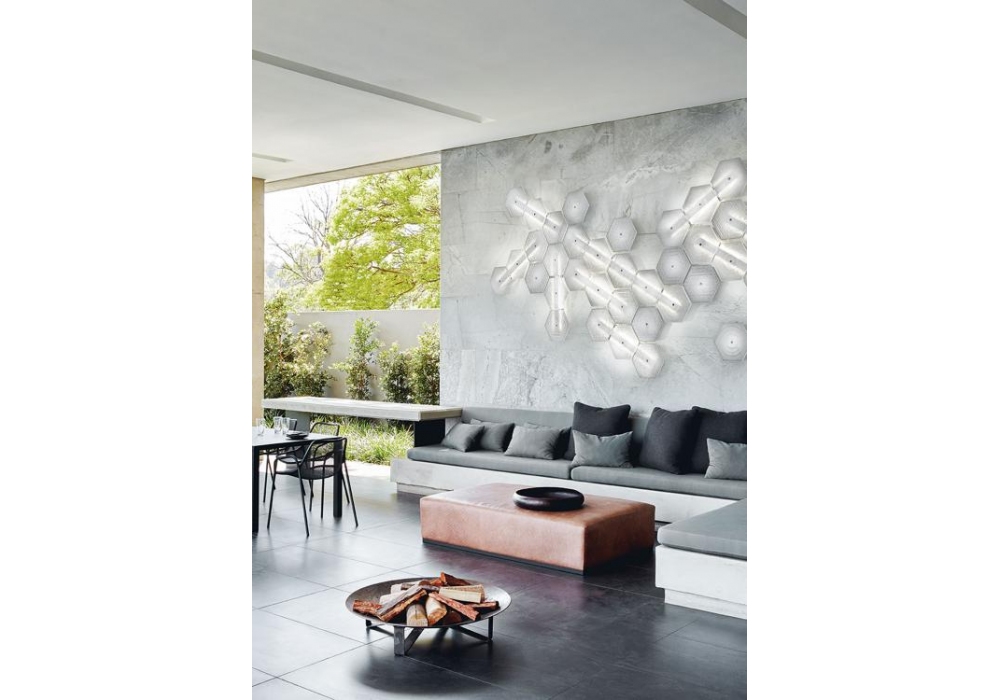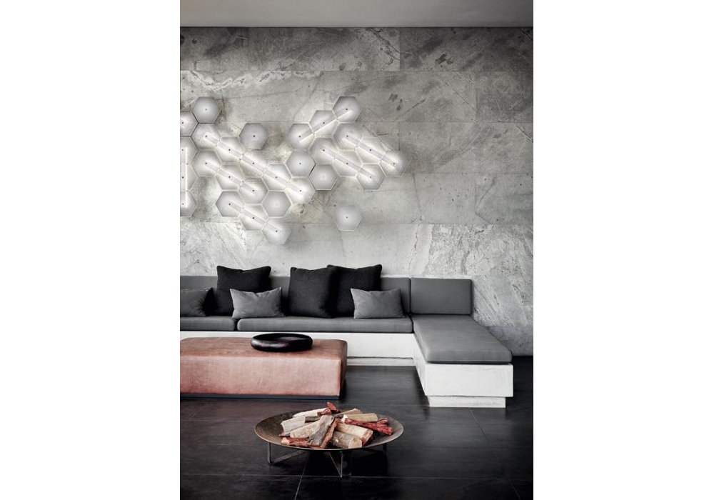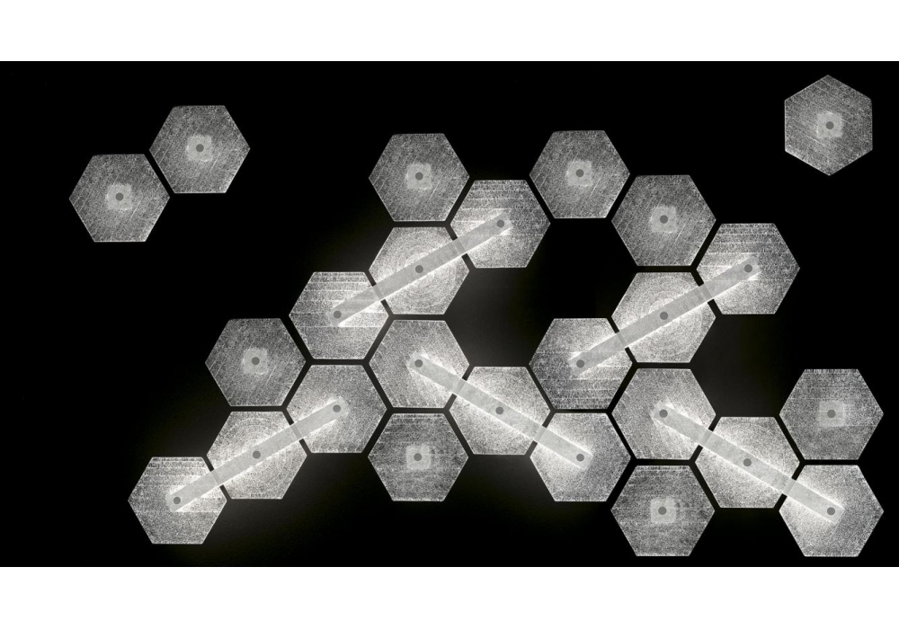 Marrakech designed by Barovier & Toso is a versatile wall lamp with supporting structure in white painted metal. The diffusers are hexagonal-shaped bricks in transparent Venetian glass and shield LED-type light sources. Marrakech is available in different models and compositions.