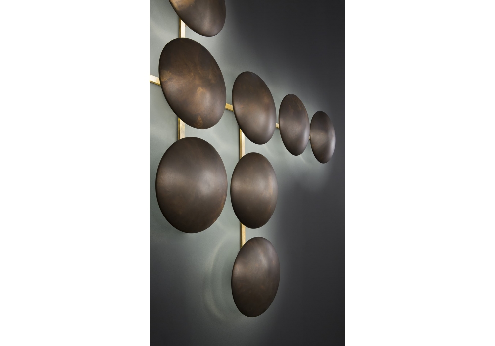Wall Clips designed by Massimo Castagna for Henge is a wall lamp composed of a combination of round metal elements (Ø 23.5 cm or Ø 40 cm).