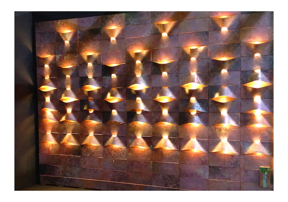 Lum Composition designed by Estefania Johnson for Quasar is a wall lamp with a composition structured by one or more quadrangular copper elements in different finishes. The light sources used are black powder-coated LED strips. Lum composition is available in different pre-assembled models, for other configurations contact our customer service.