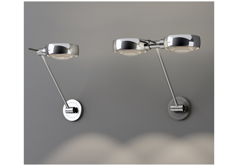 Sento Doppio designed by Occhio is a LED wall lamp made of aluminum, plastic, glass and optical plastic with flat base for mounting on underground box or high base with power supply included. Dimmable via "touchless control" or via Occhio air. Available in different finishes, dimensions and models.
