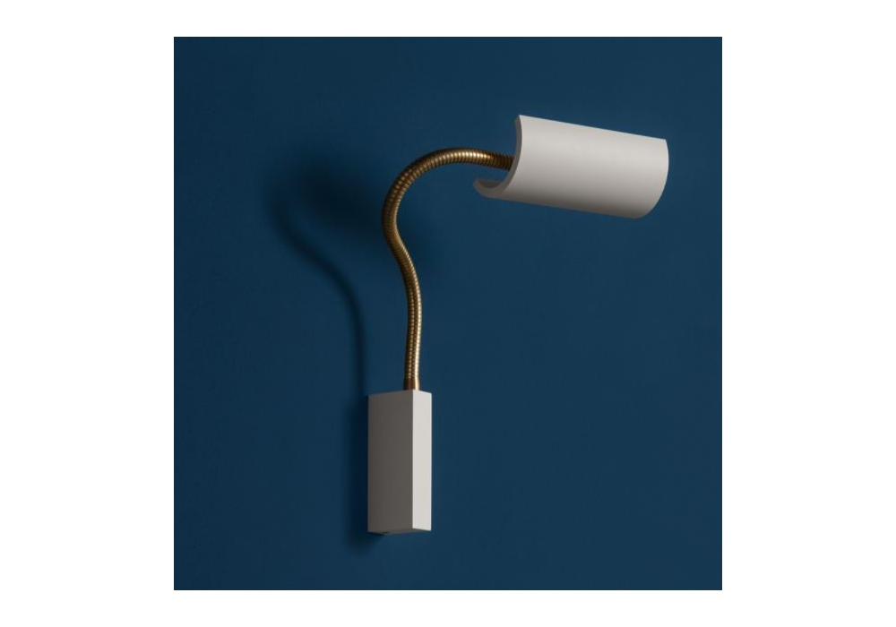 U. W Flex designed and produced by Catellani & Smith is a wall lamp with base and shade in black or white metal, flex in brass.