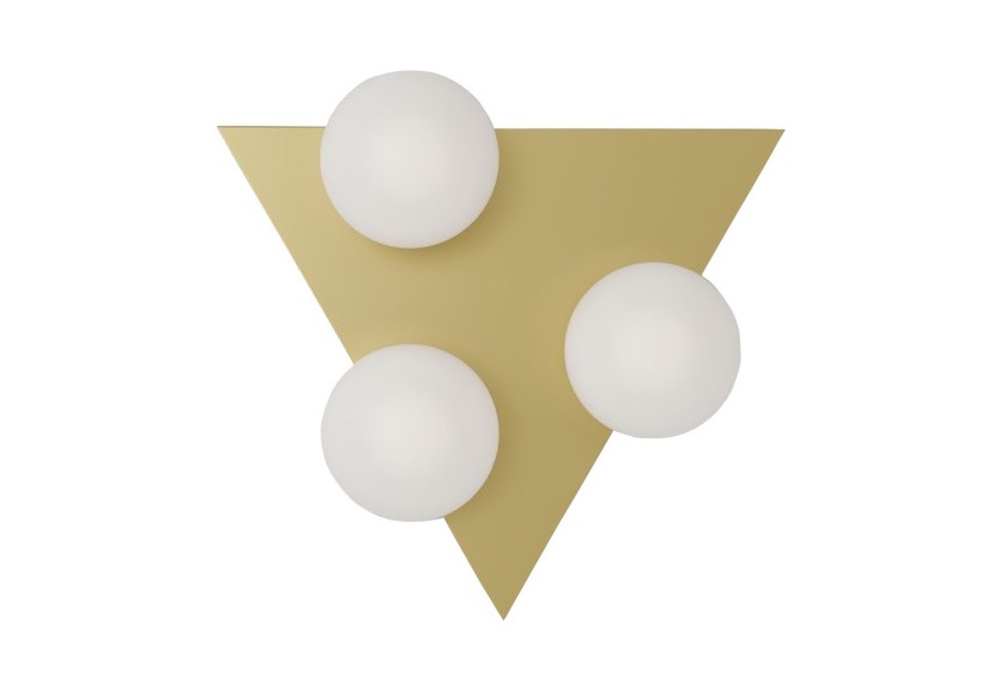 Shapes With Small Globes designed by Atelier Areti is a wall lamp made of brushed brass and three white glass spheres.