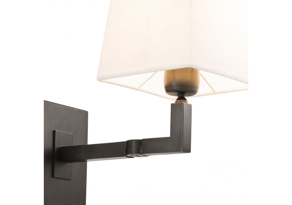 Wall Lamp Cambell designed by Eichholtz is a wall lamp with adjustable swing arm and a white lampshade in cotton and linen blend
