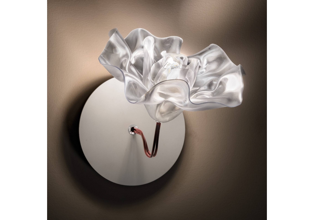 Lafleur designed by Marc Sadler for Slamp is a wall lamp with structure made of copper and painted metal. The diffuser is in Lentiflex® which, through the modeling of the plastic material, takes the shape of a flower. The light source used is of the dimmable LED type. Lafleur is available in different finishes.