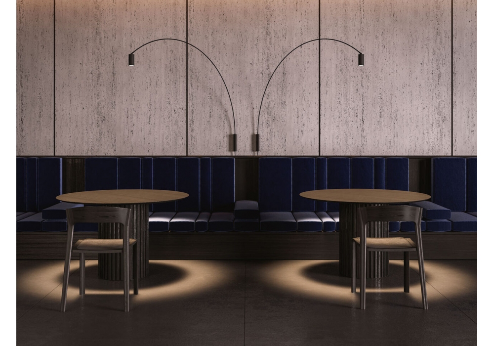 Fox designed by Bernhard Osann for Nemo is an adjustable wall lamp with structure in matt black painted tubular steel. The diffuser has a cylindrical shape that can be moved on a vertical axis of 90 ° and adopts a dimmable LED light source.