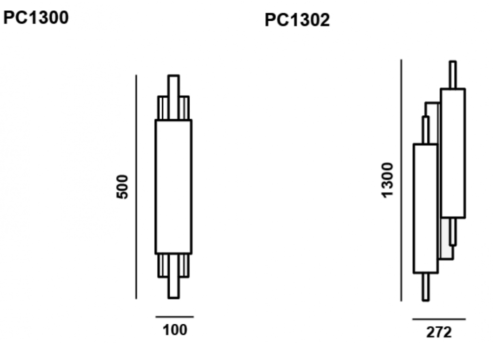 | Dimensions | 10 x H 50 cm; 27.2 x H 130 cm. |