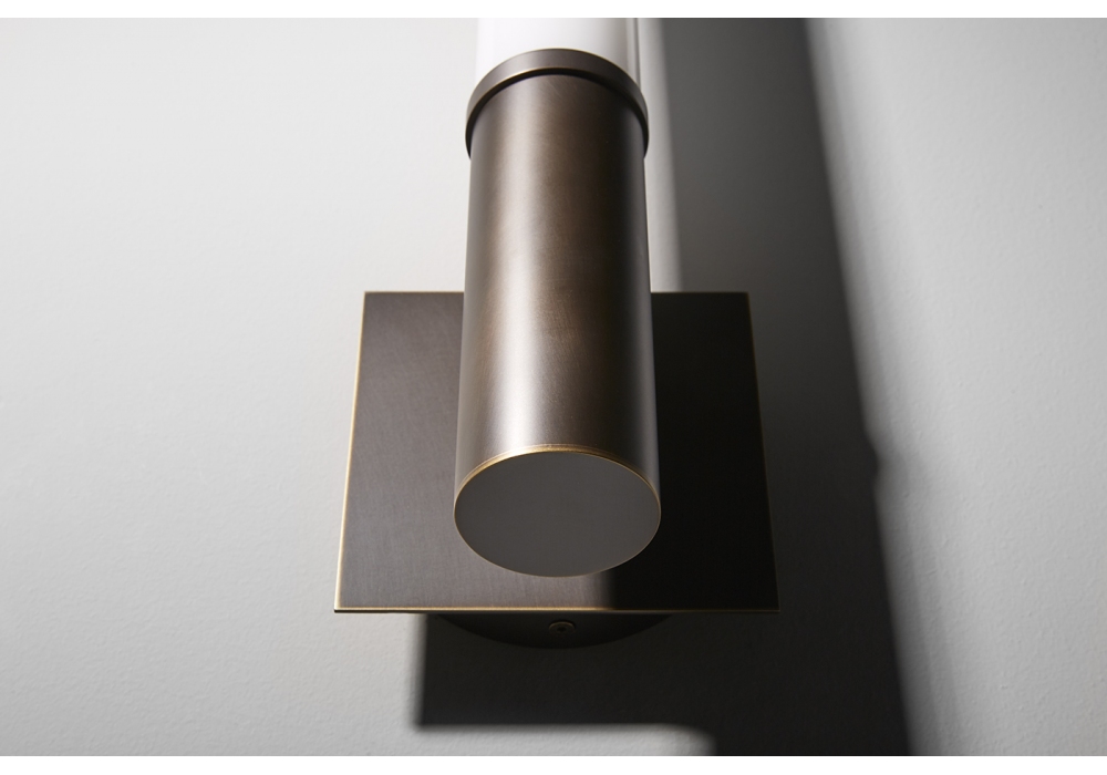 Root One designed by Massimo Tonetto for Venicem is an indirect light wall lamp. Brushed burnished brass structure and glossy white blown Murano glass diffuser.